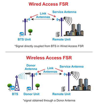2. Remote Unit: This unit receives the Link Signal and translates it back to the BTS signal which is then transmitted to the service area where network coverage is inadequate. In the Uplink, the mobile signal is also amplified and retransmitted to the BTS via the opposite direction.