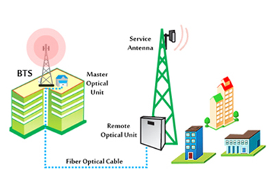 1. Master Optical Unit: MOU is directly coupled with the BTS and is placed close to the BTS location. It converts RF frequencies into optical signal and transmits this signal to the Remote Optical Unit through fiber optic cables.